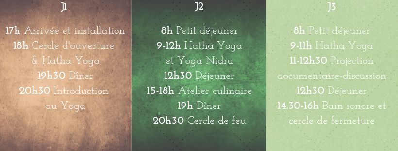 Les journées seront rythmées par une pratique énergisante avec du Hatha Yoga, Pranayama, Méditation et Nidra le matin. Le travail yoguique permettra progressivement de retrouver le chemin de l’équilibre.